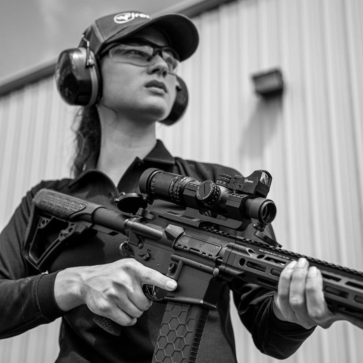 Oltre al valore del mirino reflex Impact Mini, il kit RapidStrike 1-4 include un supporto a sbalzo, torrette di bloccaggio a scomparsa e una configurazione ottica doppia per scontri a breve e media distanza.