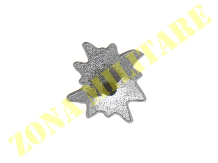 Patch ricamata e fustellata sul bordo, richiama il classico foro di proiettile.