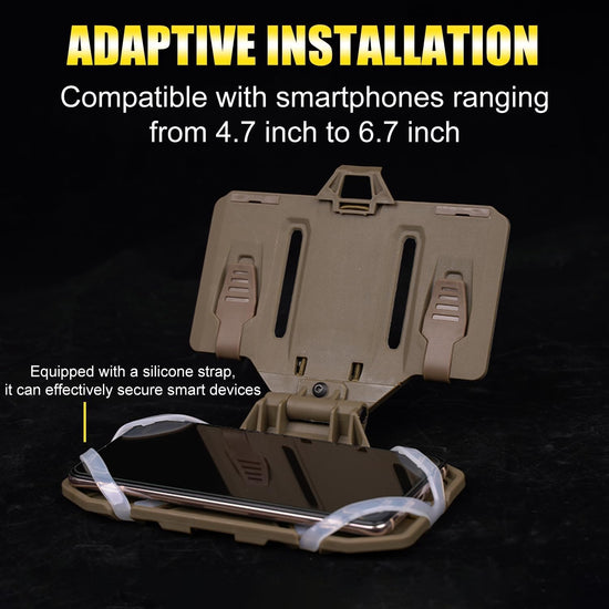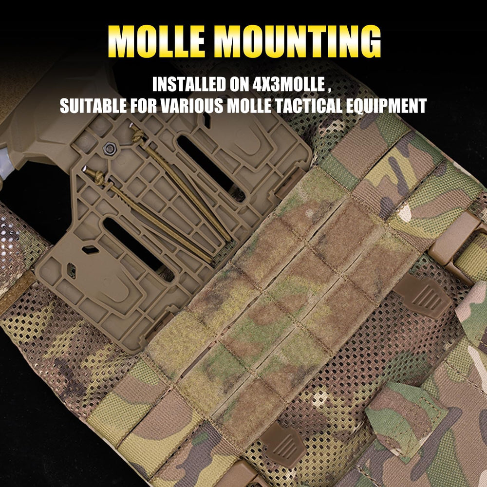 Facile da attaccare a un gilet tattico, marsupio, zaino o qualsiasi altra superficie compatibile con sistema MOLLE 4X3. Aprilo per fissare il tuo dispositivo e chiudilo per evitare che cada.