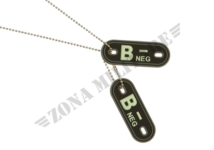 Coppia di piastrine gommate con gruppo sanguigno rappresentato in rilievo.