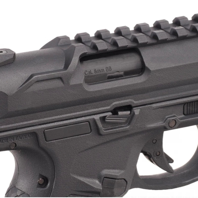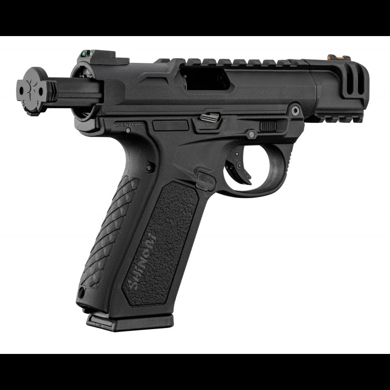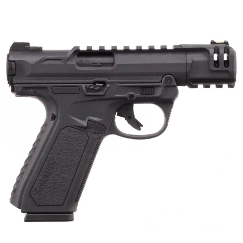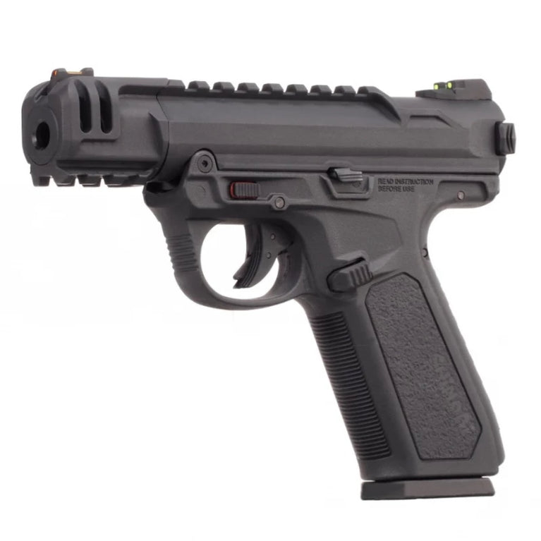 AAP01 è un mix della leggendaria pistola in stile Ruger con un design moderno e compatibilità con i caricatori della serie G17. Il ricevitore superiore e inferiore sono realizzati in robusto polimero con inserti metallici per le parti funzionanti.