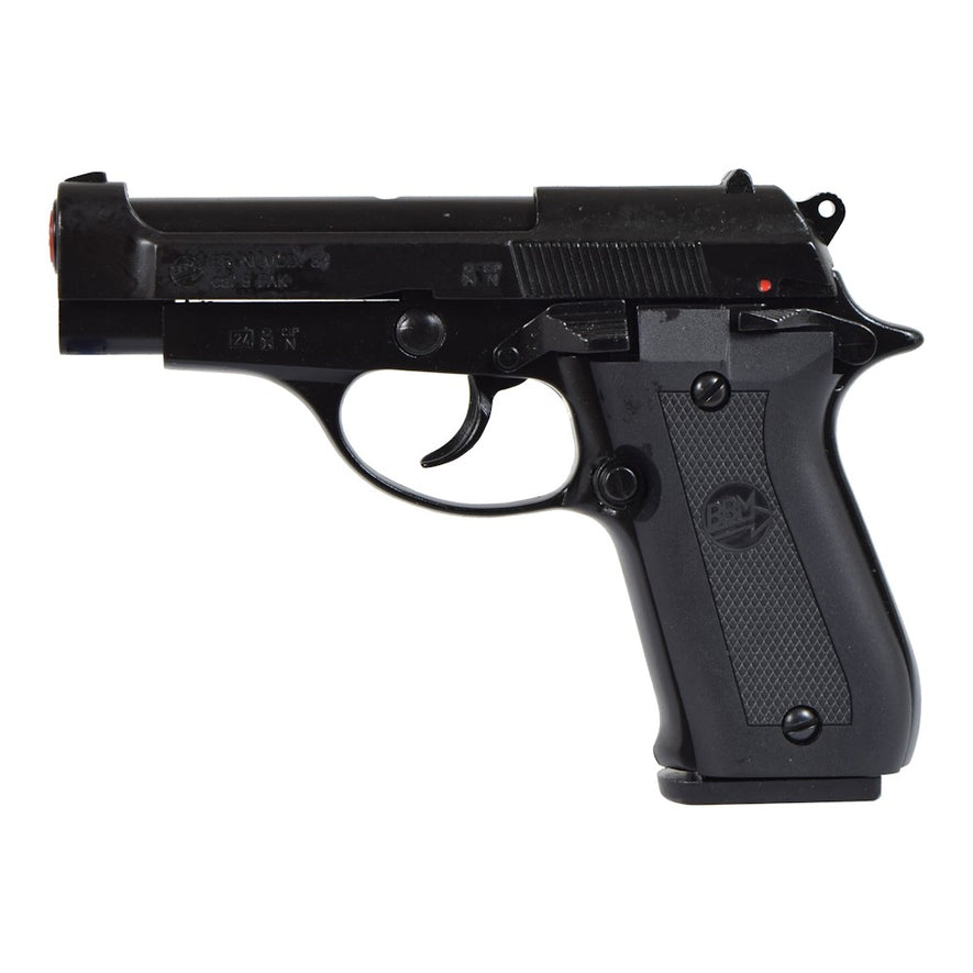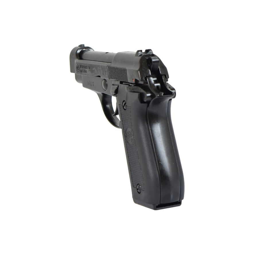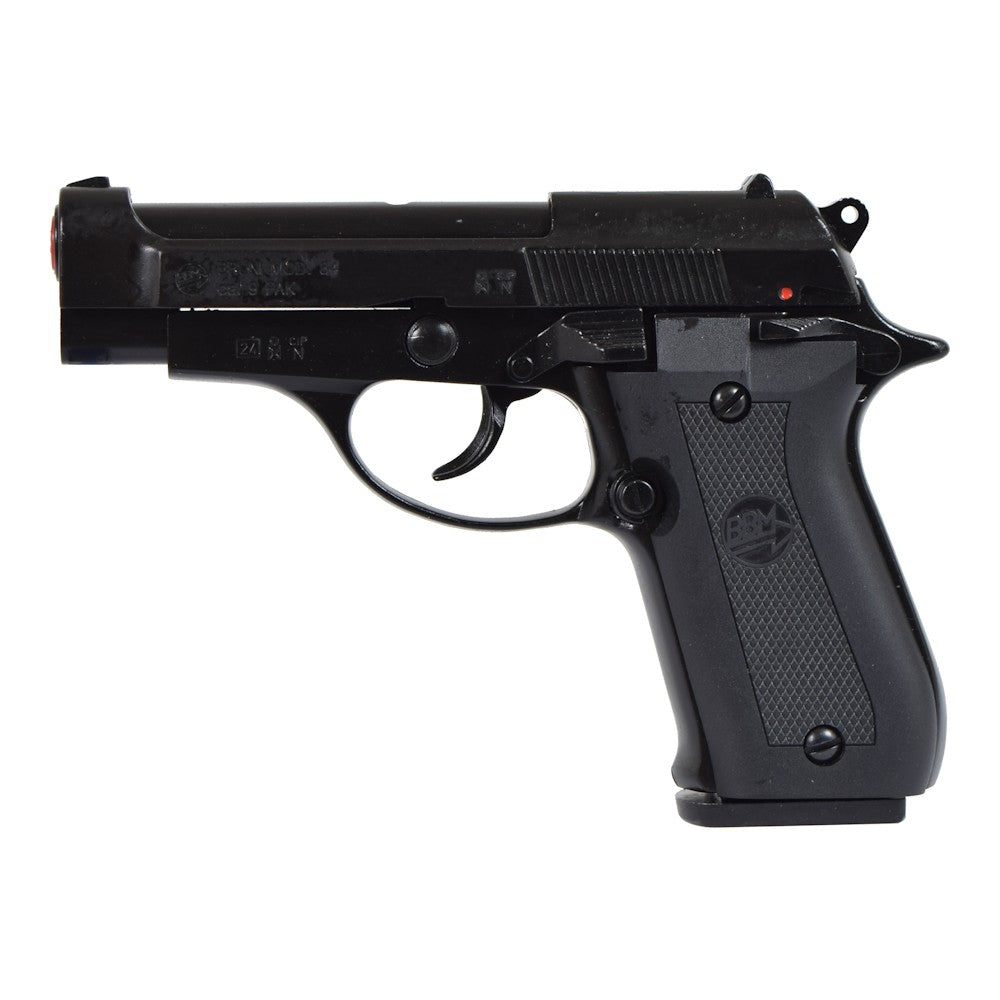 Pistola scarrellante semiautomatica Bruni a salve replica perfetta in scala 1:1 del modello Beretta 84 nera, full metal.