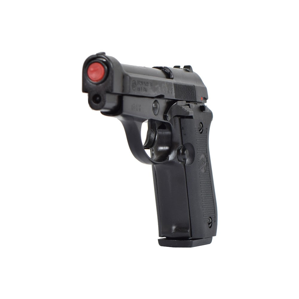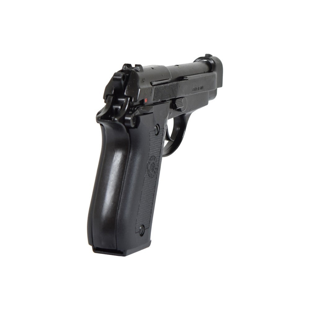 Funzionamento a singola/doppia azione, impugnatura ergonomica antiscivolo, caricatore capacità 8 colpi calibro 9 mm. (il botto e identico a quella reale), sicura a grilletto, la camera di scoppio ha un foro laterale di sfiatamento che ne impediscono una eventuale rottura, la pistola viene fornita con valigetta in ABS nera. Le misure corrispondono al modello originale sembra di maneggiare una pistola vera!!. Ottima da collezione, come scacciacani, per i botti di fine anno, ecc. Prodotta in Italia dalla Bruni srl Milano.