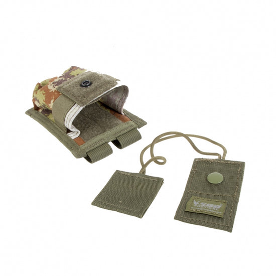 Tasca porta radio con sistema M.O.L.L.E dotata di elastico di ritenuta.