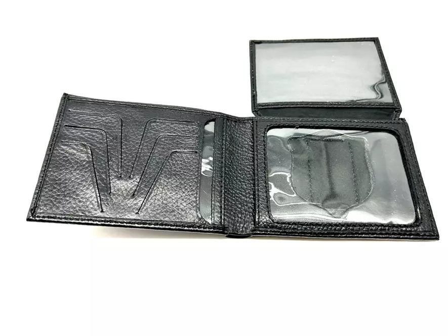 Portafoglio Polizia di stato con porta placca . Materiale in pelle morbida con porta placca con clip per Polizia di Stato. Dotato di pattina per occultare la placca, porta carte di credito, porta tesserino e porta denaro.