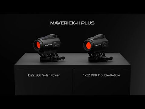 Maverick-II Plus 1x22 DBR: mirino a punto rosso leggero, resistente e senza compromessi di Vector Optics. Affidati all'affidabilità in tutte le condizioni con un mirino realizzato in alluminio aeronautico 6061-T6. Con 8 livelli di luminosità regolabili, sistema multi-reticolo, design senza parallasse e pannello solare per la ricarica della batteria, il Maverick-II Plus offre la massima precisione, comfort di mira e un'eccezionale autonomia energetica.
