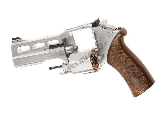 Gli articoli solidi e di alta qualità offrono principalmente una costruzione esterna in lega di alluminio: telaio e canna esterna. Ulteriori elementi critici sono lavorati in acciaio. L'impugnatura che imita il legno è stampata a iniezione in polimero. All'interno, Chiappa ha fornito parti di qualità che garantiscono un utilizzo a lungo termine e la precisione di ogni sparo
