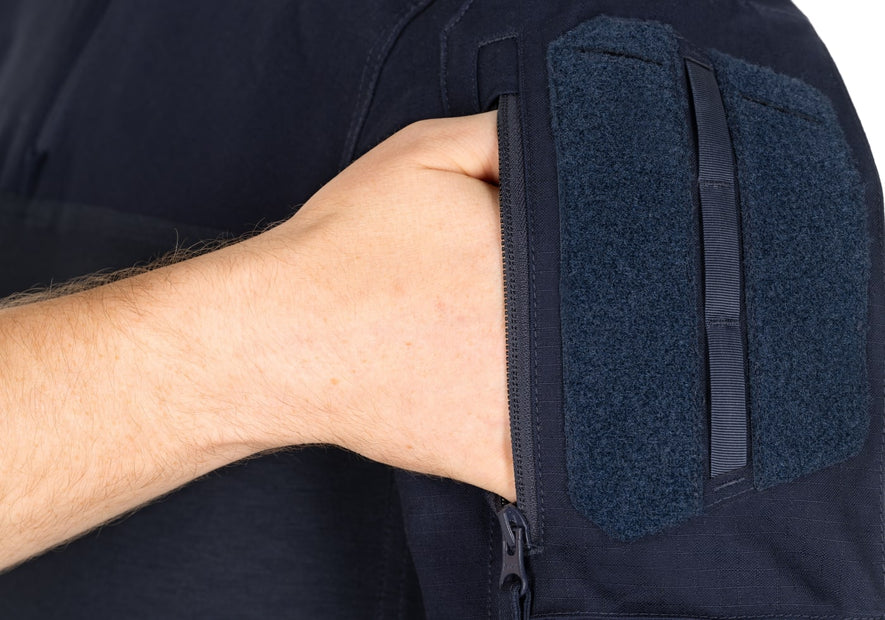 La manica superiore esterna incorpora toppe ad anello e fettucce per il fissaggio di indicatori IFF, V-LITE® o altri articoli dell'unità.