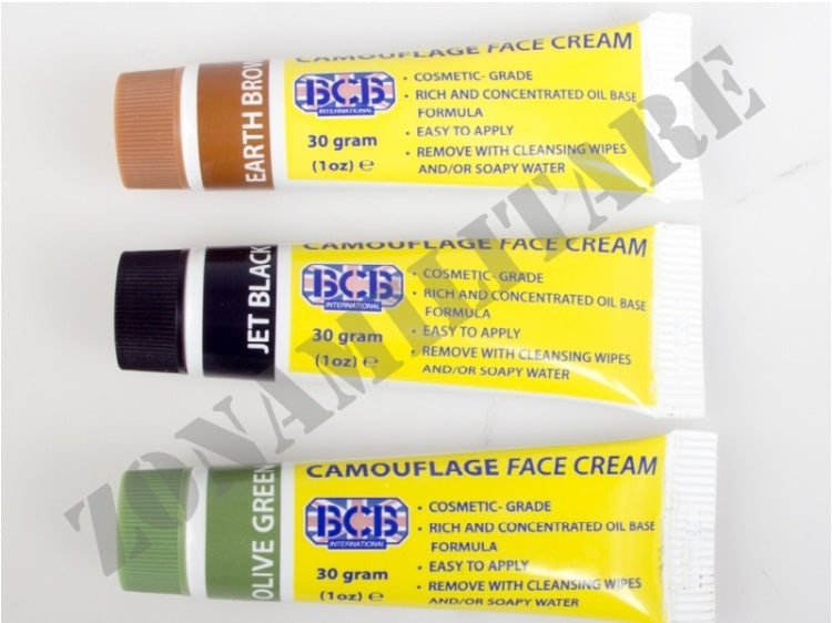 Confezione di 3 tubi di pasta colorata per trucco Gr.30 cad. nei colori VERDE OLIVA, NERO, MARRONE