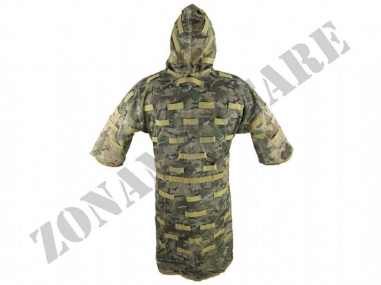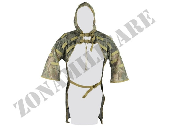 Le fasce elastiche cucite sulla vestizione permettono di inserire al loro interno fogliame e materiale per adattarsi al terreno.