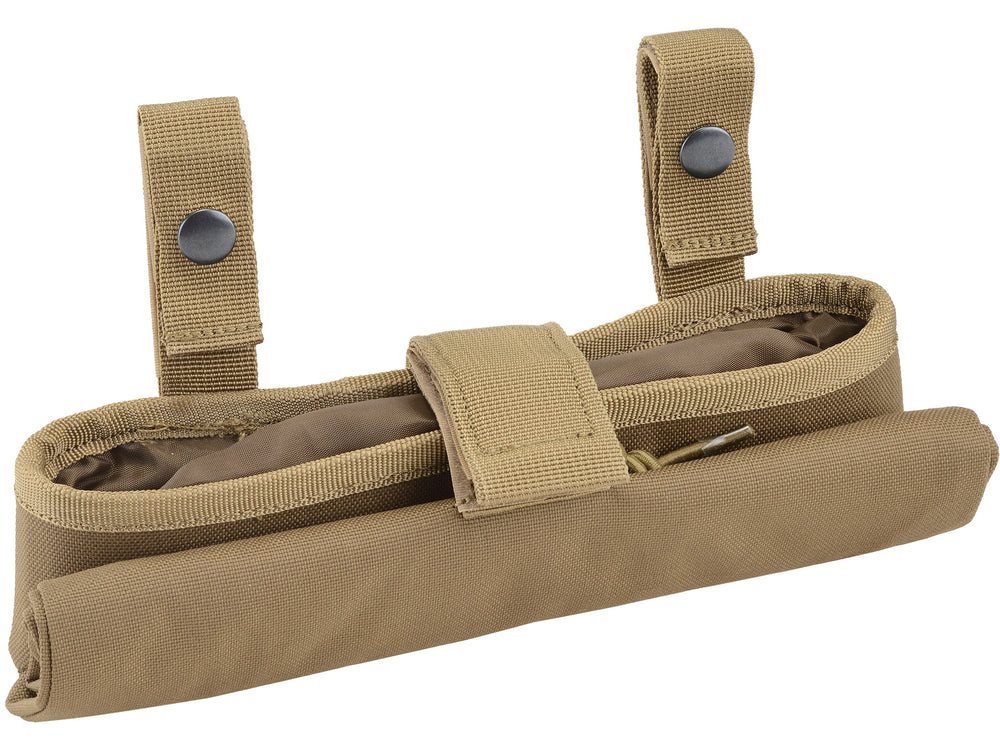 Sacca porta caricatori esausti ripiegabile su se stessa per ridurre l'ingombro. Inseriti alla base della sacca fori per il drenaggio di eventuali liquidi o polveri.
