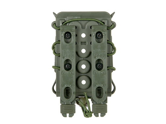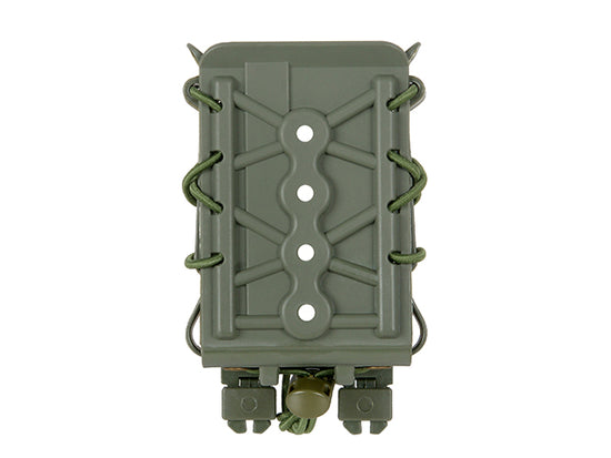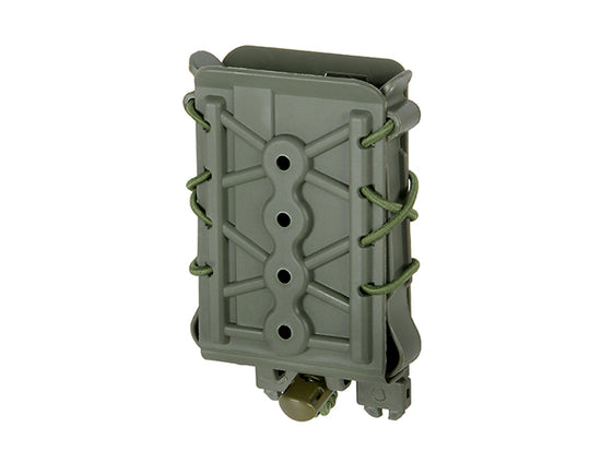 Tasca in materiale termoplastico con cordino elastico per tenere saldamente il caricatore al suo interno. La struttura aperta garantisce un' estrazione facile e veloce del caricatore. La tasca si adatta alla maggior parte dei caricatori standard 5.56 e 7.62 e a molti altri accessori. Compatibile con tutte le piattaforme MOLLE.