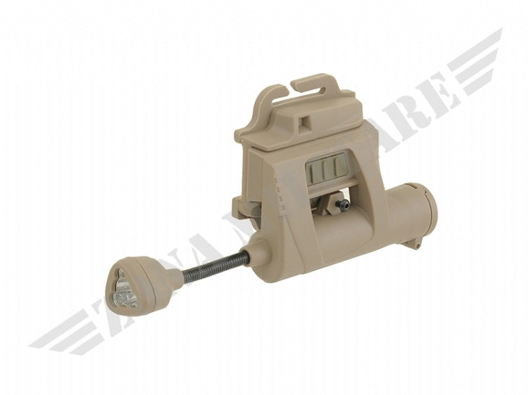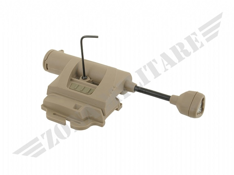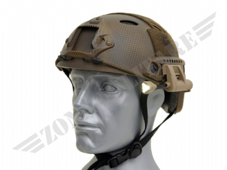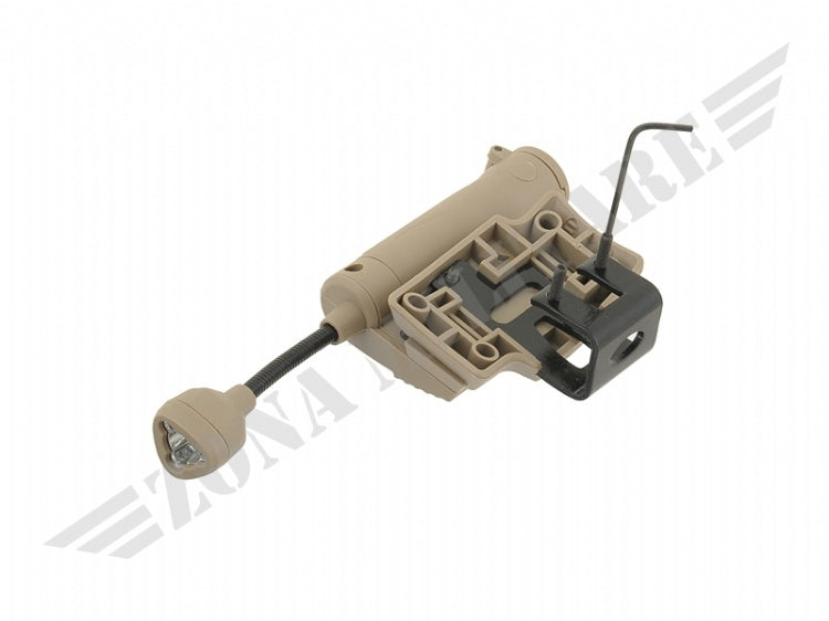 Facilmente applicabile sulle slitte laterali di elmetti tipo Fast Helmet oppure con l'ausilio di accessori contenuti nella confezione anche su elmetti non dotati di slitta tipo Fritz.