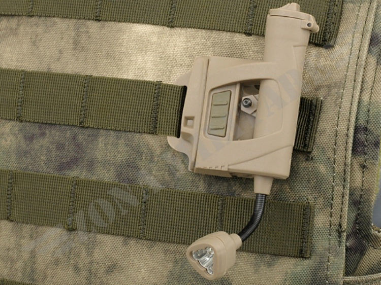 Nella confezione c'è anche l'accessorio per renderla indossabile su buffetteria e tattici con supporti tipo molle.