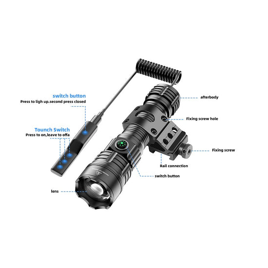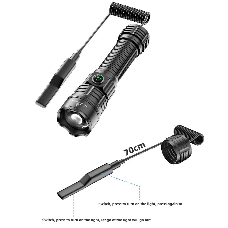 5 modalità di illuminazione: alta / media / bassa / stroboscopica / SOS / spenta. Tenere premuto l'interruttore per 2 secondi per spegnere.