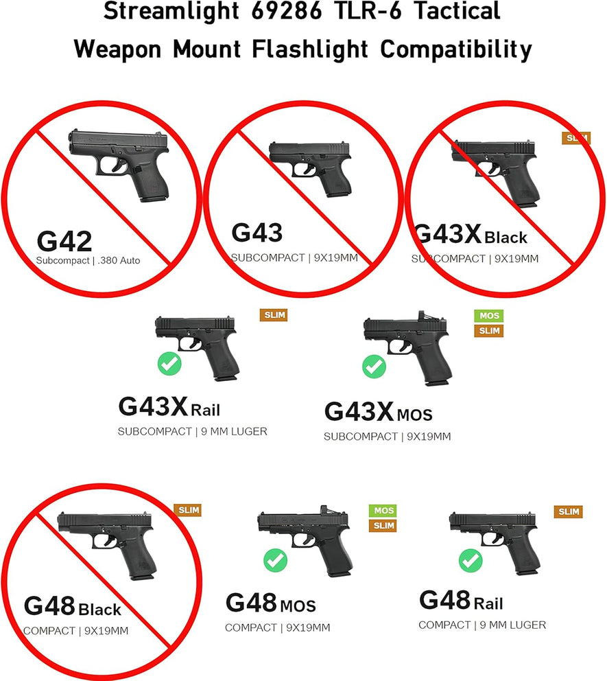 Un mirino laser/torcia subcompatto e super robusto, sviluppato appositamente per le pistole Glock 43X, 43X Rail, 48 MOS e 48 Rail. Grazie al peso ridotto di soli 36 g e alle dimensioni compatte, il TLR-6 si adatta perfettamente ai modelli menzionati e offre prestazioni ottimali nella sua classe di dimensioni.