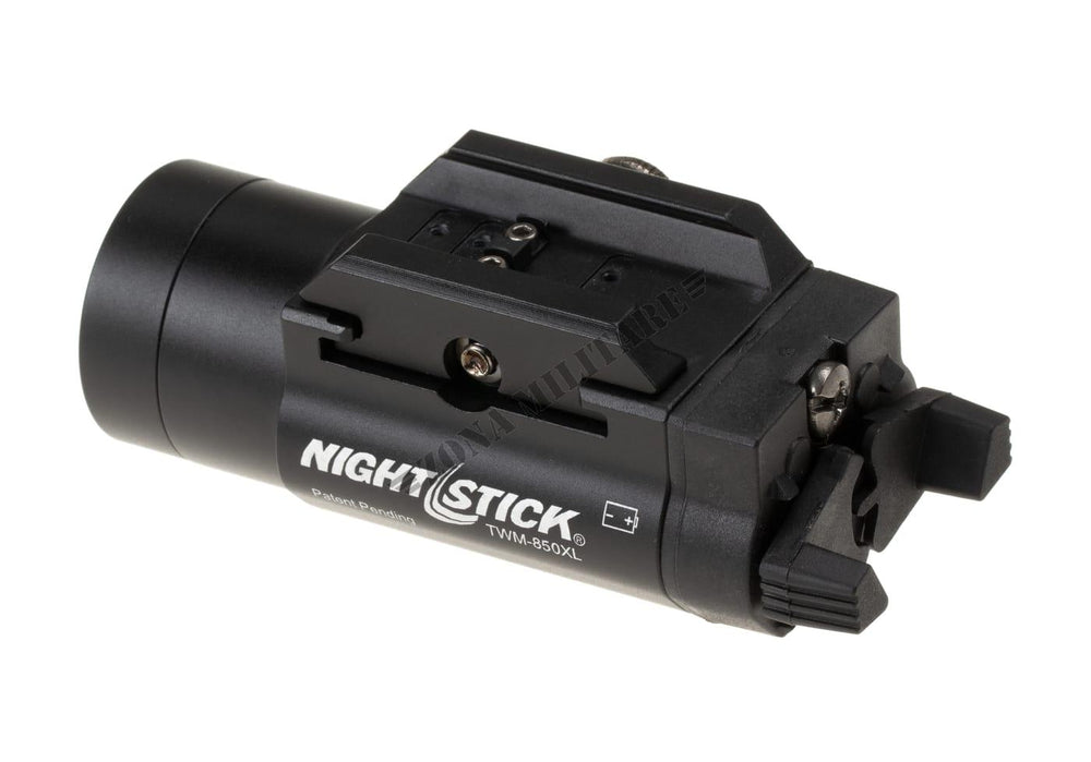 La luce tattica montata su arma TWM-850XL utilizza un LED con potenza nominale di 850 lumen che funziona in combinazione con un riflettore parabolico profondo ad alta efficienza per creare un fascio di luce utilizzabile con portata nominale di 245 metri. Questa luce per arma è dotata di un esclusivo e completamente ambidestro Dual Dependent Toggle Switch su ciascun lato della luce per azionare le modalità di illuminazione momentanea e costante. L'alloggiamento della TWM-850XL è realizzato in alluminio 6061-T6 di qualità aeronautica con uno sportello della batteria in polimero di nylon riempito di vetro e interruttori a levetta. L'alimentazione proviene da due batterie CR123 incluse. (Non compatibile con batterie ricaricabili.)