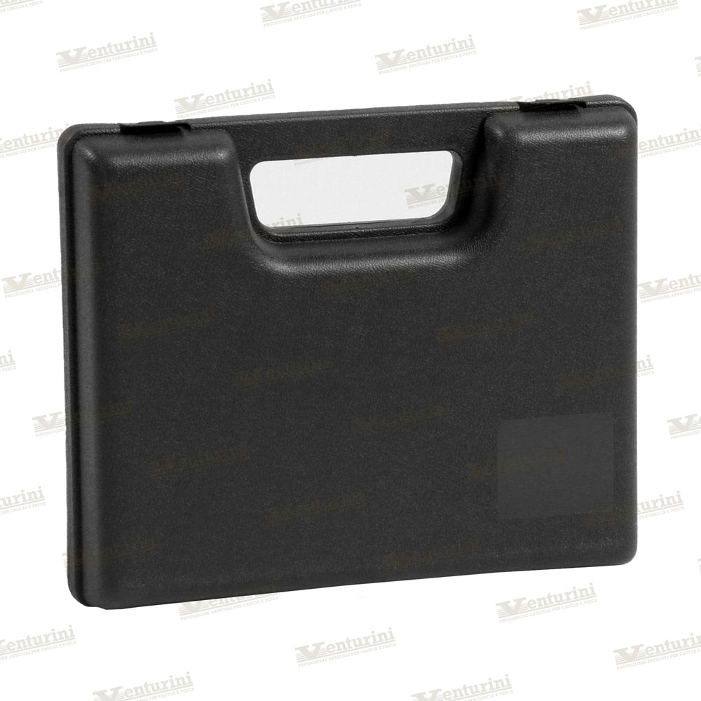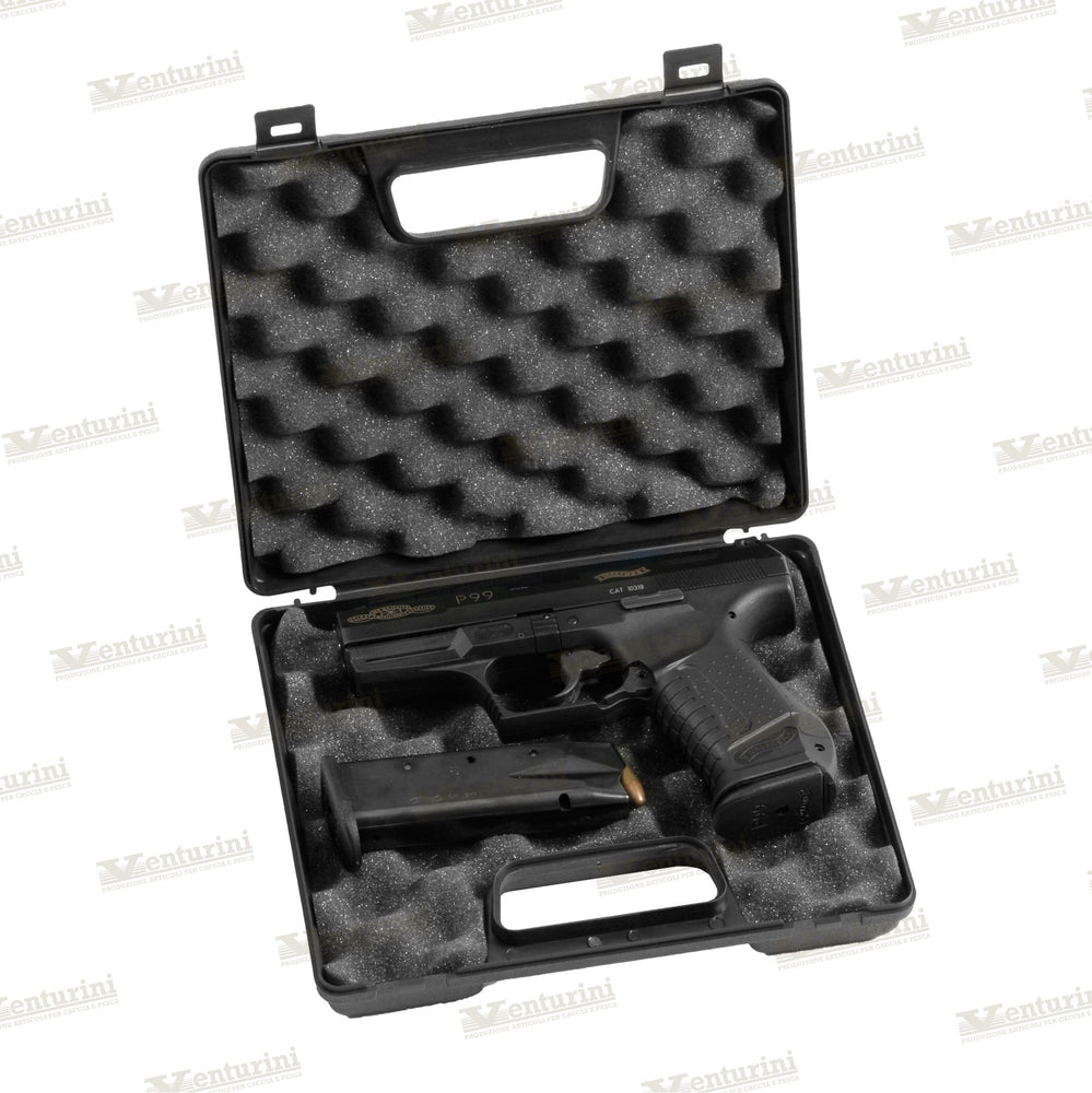 VALIGIA PER PISTOLA IN P.P. con interno spugnato, colore nero. 2 chiusure a clip. Dimensioni esterne cm 23,2 x 19,0 x 6,0. Dimensioni interne cm 22,0 x 18,0 x 5,5. Peso g 200.